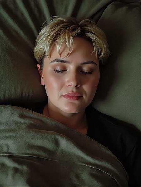 - A woman Tasha Yar, with a Tasha Yar pixie hair style, laying down asleep in her bed